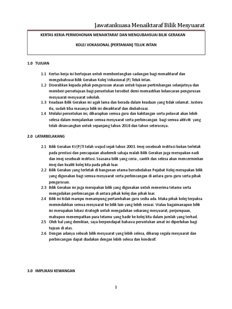 Kertas Kerja Bilik Mesyuarat Pdf